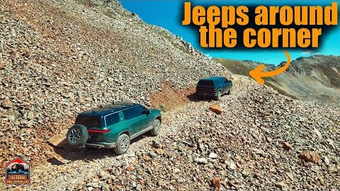 A Rivian & Power Wagon attempt a sketchy difficult trail!